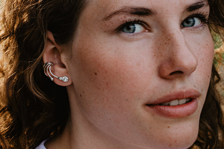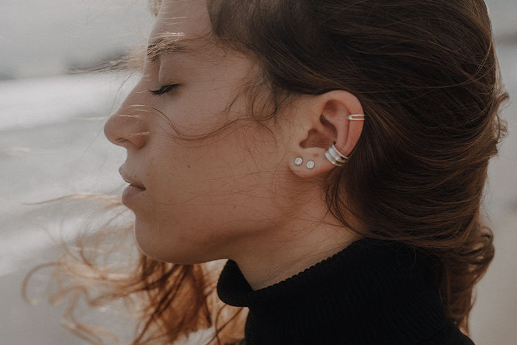 Earcuffs halten durch den oberen Ringteil, der sich sicher in der Ohrmuschel verankert. Mit der passenden Größe und einer kleinen Anpassung durch vorsichtiges Auf- oder Zubiegen sitzt dein Earcuff angenehm und bleibt zuverlässig an seinem Platz.